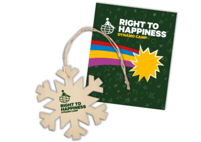 Il fiocco di neve in legno naturale è una decorazione elegante e simbolica. Ogni pezzo, confezionato con cartoncino che racconta la tua scelta, contribuisce a sostenere Dynamo Camp e la realizzazione della Sessione di Natale per 30 famiglie. Un dettaglio che rende il tuo albero unico e ricco di significato.