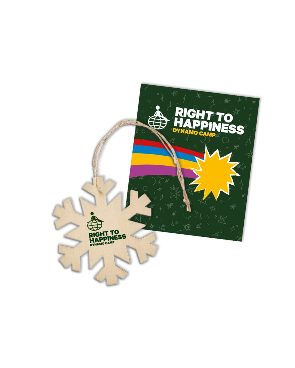 Il fiocco di neve in legno naturale è una decorazione elegante e simbolica. Ogni pezzo, confezionato con cartoncino che racconta la tua scelta, contribuisce a sostenere Dynamo Camp e la realizzazione della Sessione di Natale per 30 famiglie. Un dettaglio che rende il tuo albero unico e ricco di significato.