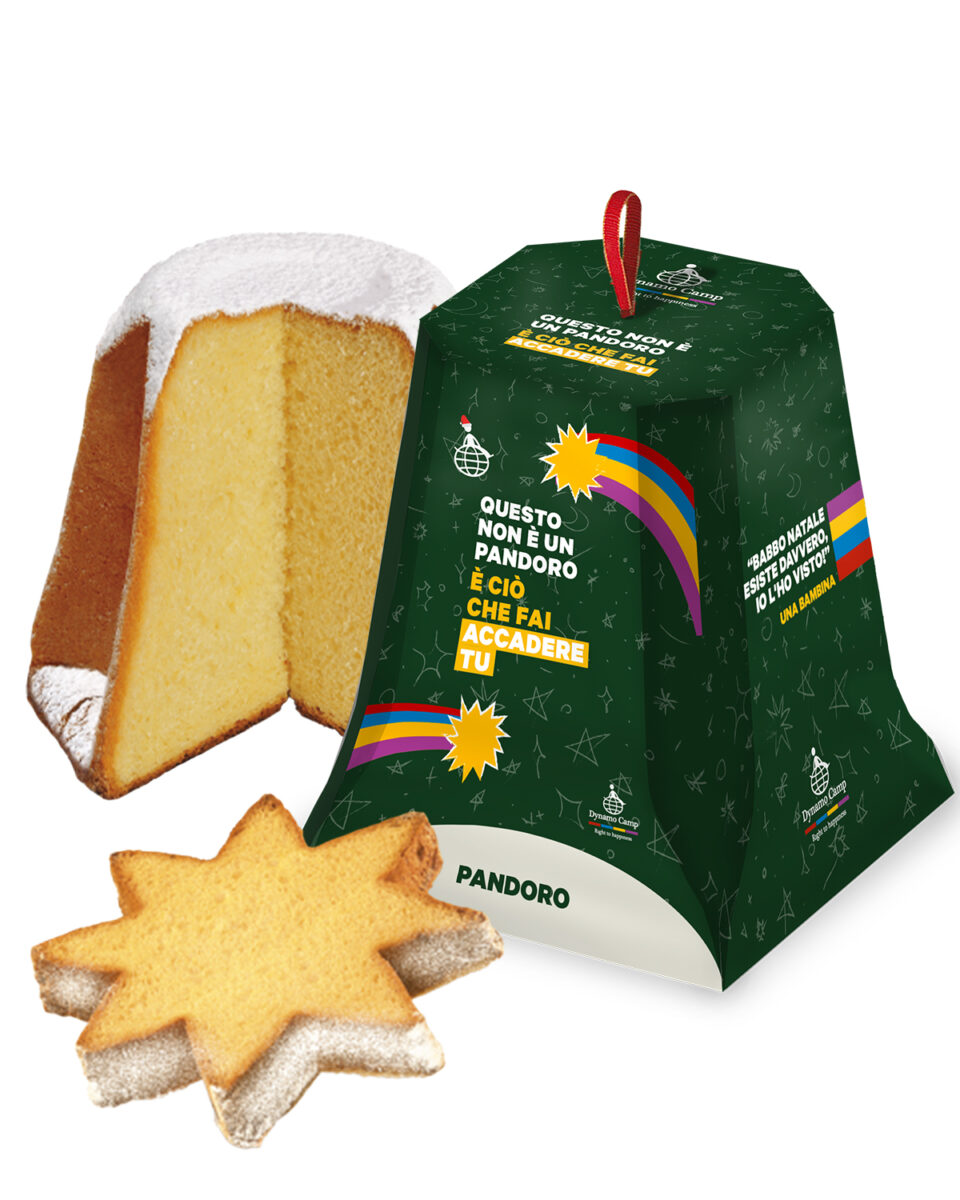 Il pandoro Dynamo, soffice e profumato firmato Maina, è realizzato con ingredienti di qualità e confezionato in una scatola dal design esclusivo. Ogni pandoro sostiene i programmi di Terapia Ricreativa Dynamo® e aiuta a realizzare la Sessione di Natale per 30 famiglie. Un regalo che fa felici chi lo riceve e chi lo rende possibile.